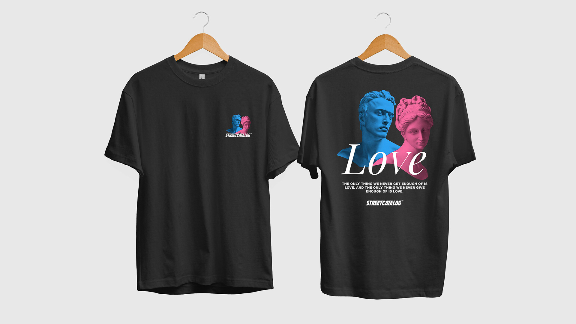 Created 10 designs and illustrations for the streetwear brand Streetcatalog, with the final designs presented in detailed mockups.